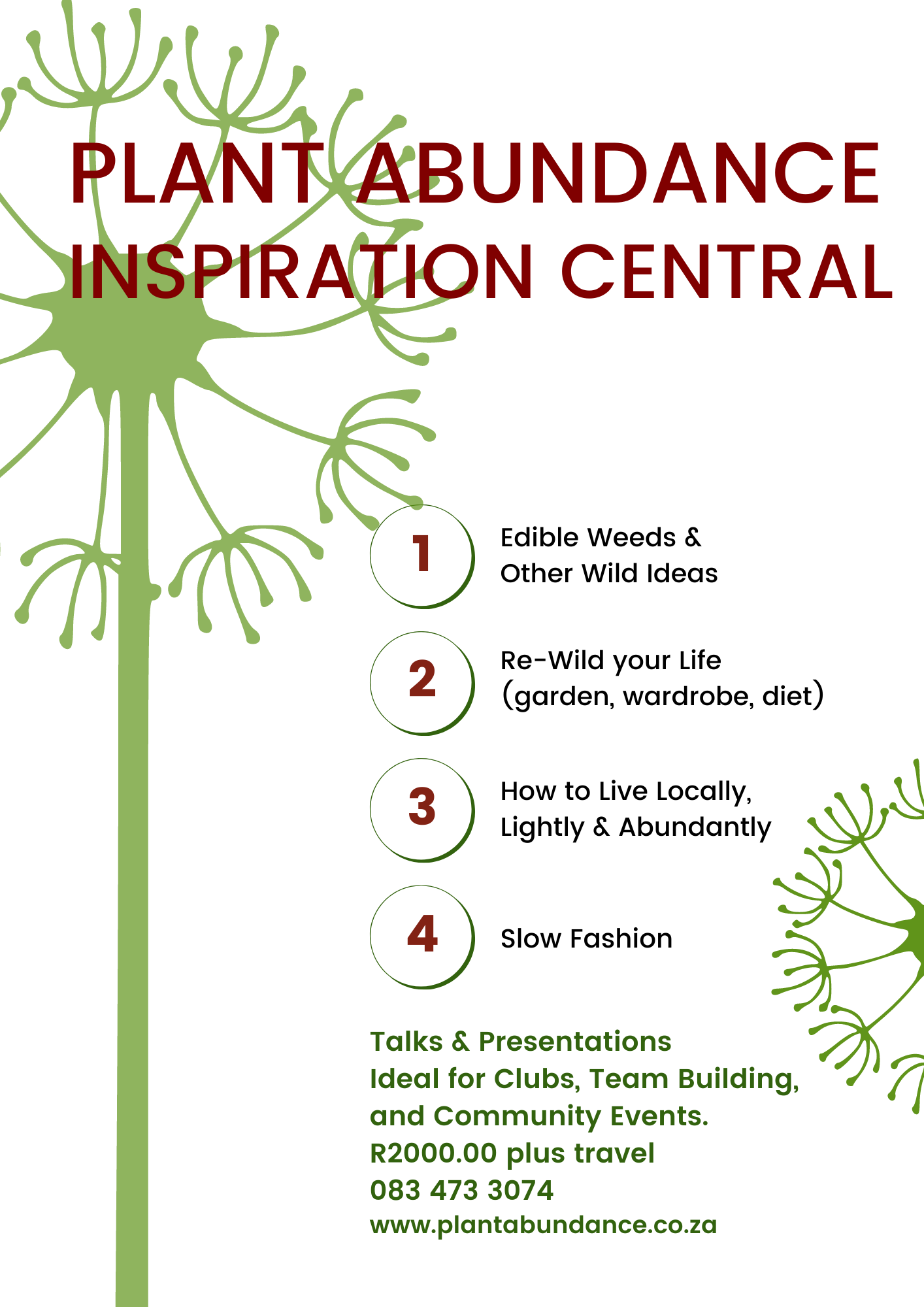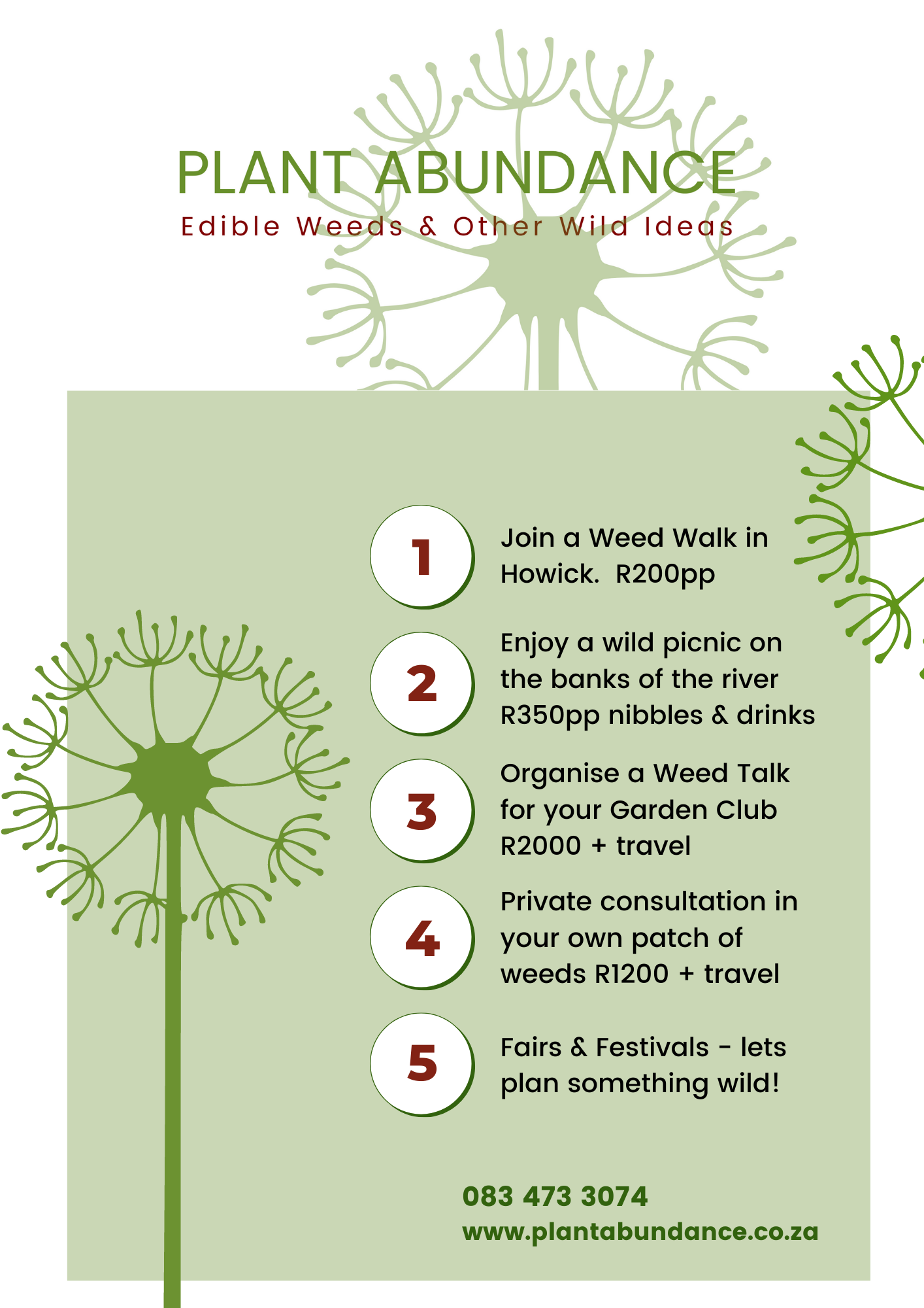 Subscribe to receive Wild About Weeds Seasonal Newsletters – nikki@plantabundance.co.za